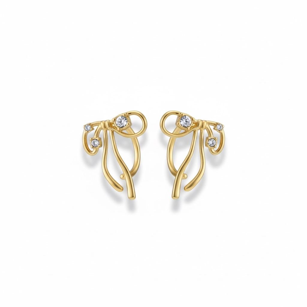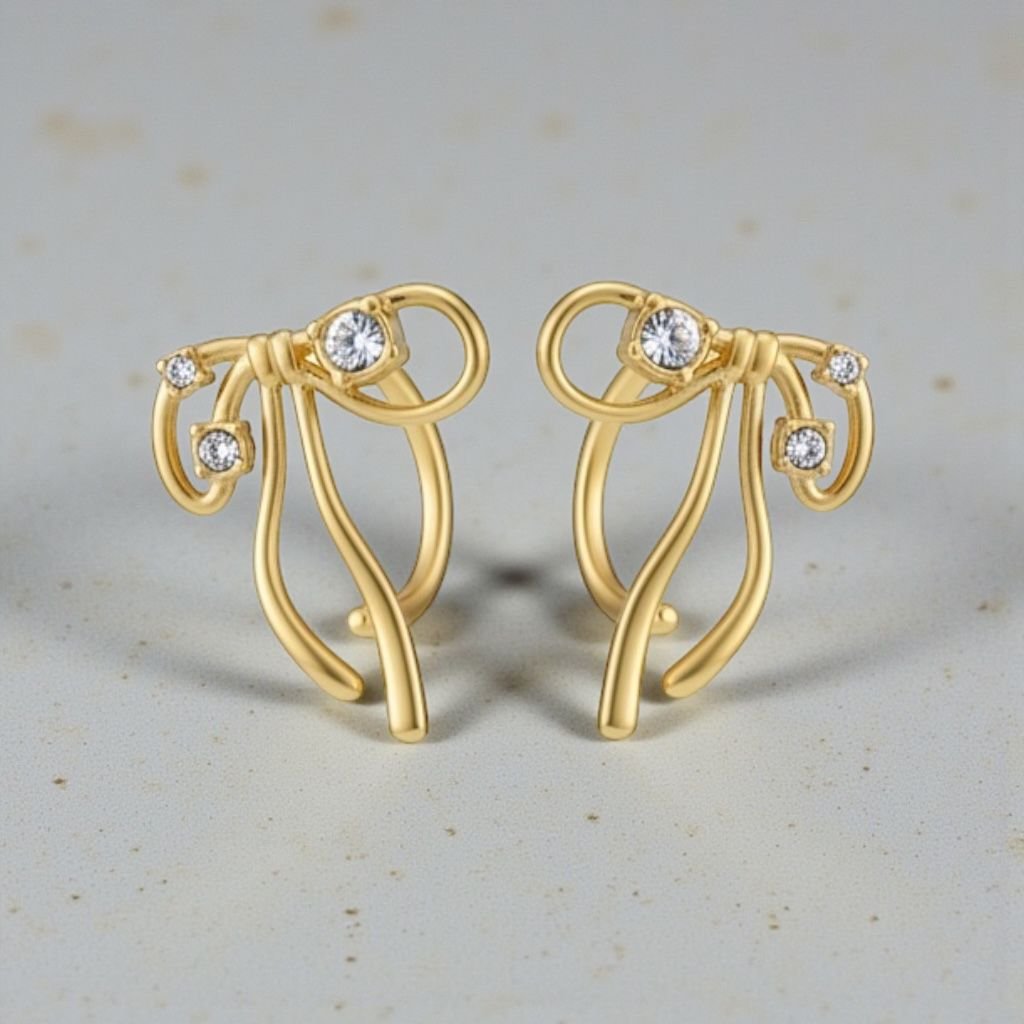 Make a subtle statement with the Stainless Steel Abstract Crystal Stud Earrings. Featuring fluid, sculptural gold-tone lines adorned with delicate crystal accents, this design blends contemporary art with refined elegance.