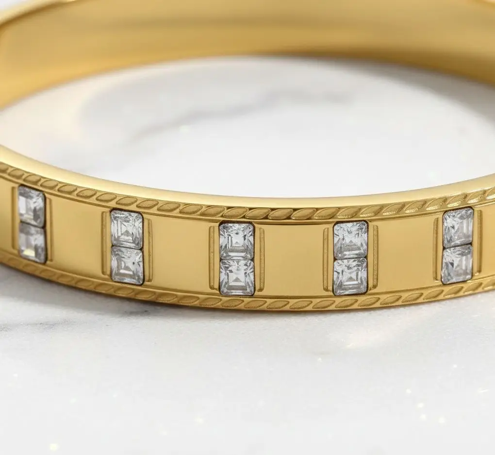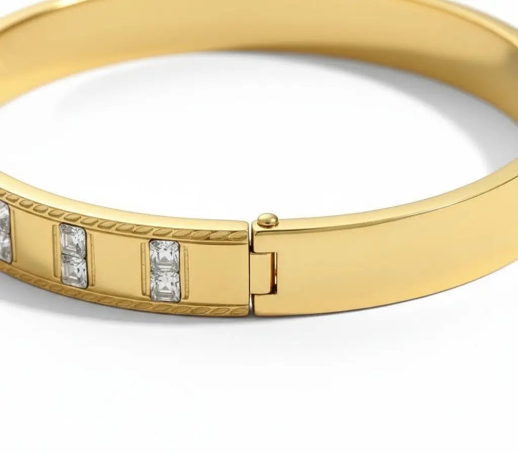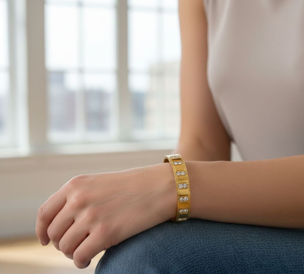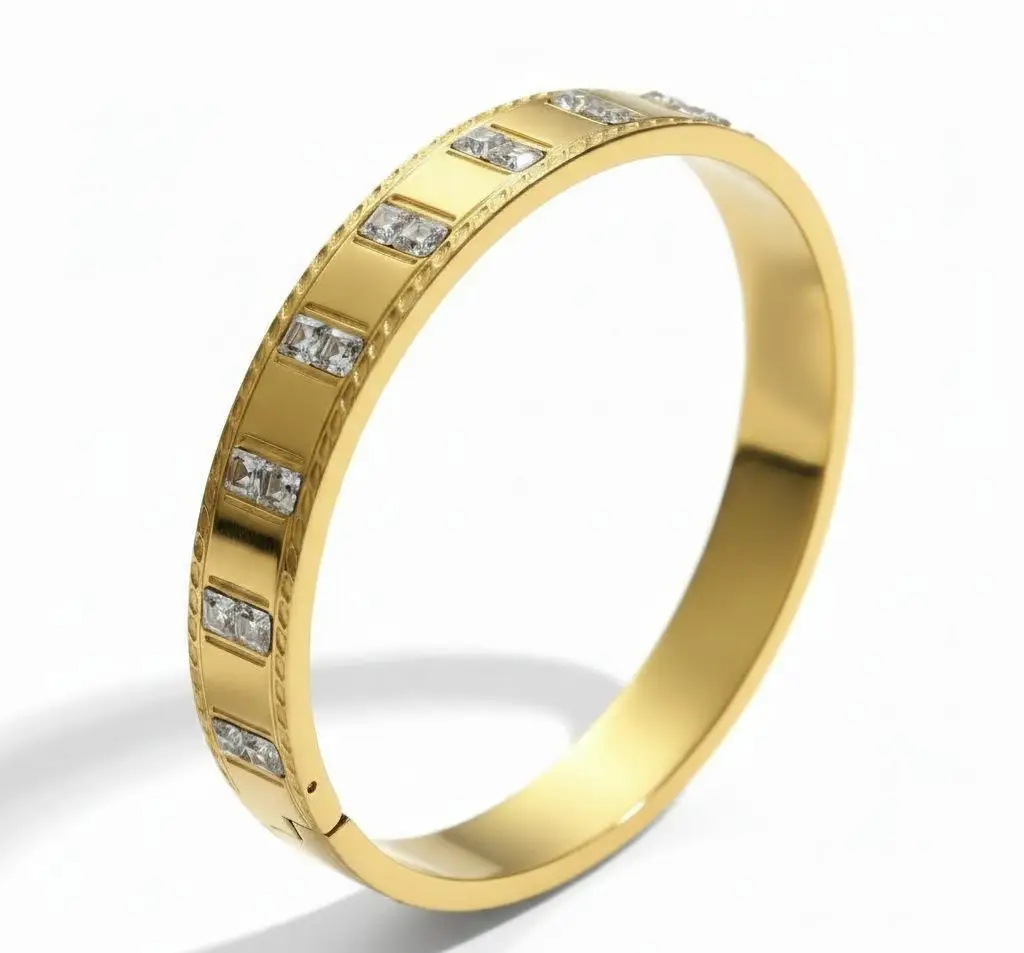 The Classic Crystal Stainless Steel Bracelet from Alankritta is designed for effortless, everyday elegance. Crafted from high-quality stainless steel, it offers durability, long-lasting shine, and a refined gold-tone finish.