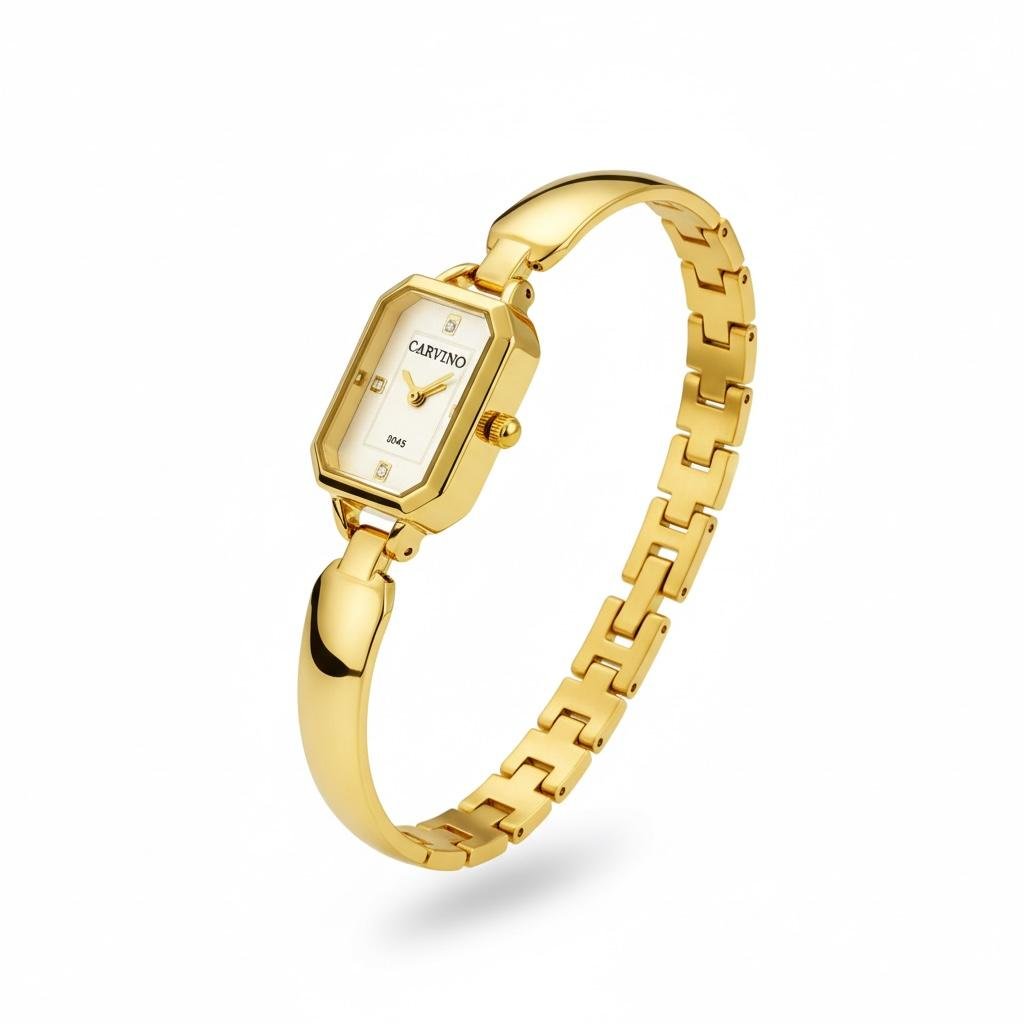 Elegant Gold-Tone Rectangular Bracelet Watch for Women