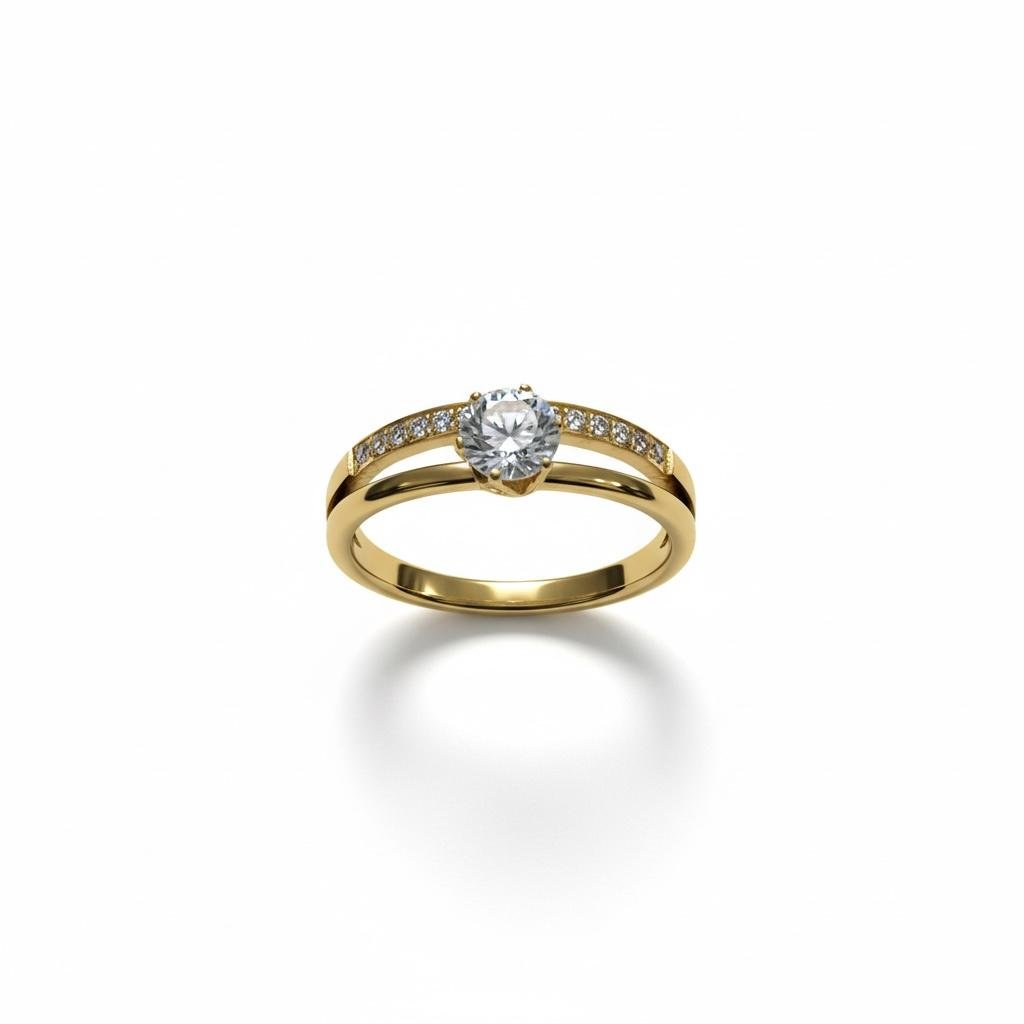 Add timeless charm to your jewelry collection with this elegant solitaire-style ring, crafted in premium anti-tarnish imitation metal with a rich gold finish. The sparkling crystal centerpiece is beautifully complemented by delicate stone detailing along the band, creating a luxurious look that stands out effortlessly.