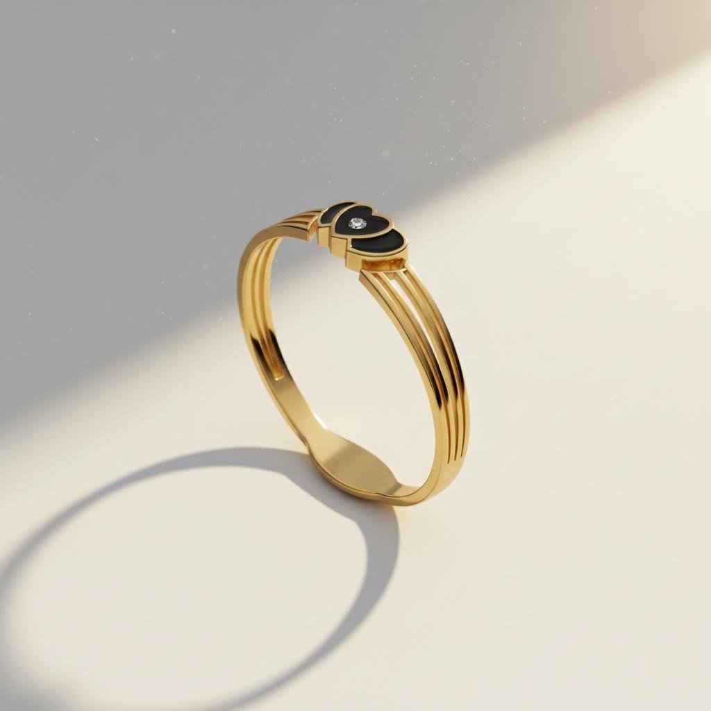The sleek gold-tone finish is beautifully contrasted by a bold black heart centerpiece, delicately accented with a sparkling crystal for just the right hint of glamour. Its structured yet elegant silhouette makes it ideal for both everyday styling and special occasions.